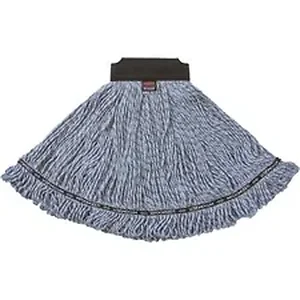 Mophead features the unique Maximizer Blend that delivers a high absorbency ratio and improved productivity. Made of yarn fibers of the highest quality and durability, this medium-size mop absorbs up to three times as much as cotton and offers 30 percent more floor coverage and 25 percent less weight than traditional mops. With industry-leading durability, this mophead is developed to withstand up to 50 commercial laundering cycles. Distinct color allows color-coding to easily distinguish and identify which products should be used in which areas of a facility, reducing cross-contamination. Use the blue mop for general-purpose cleaning in low-risk areas. Handle/mop is sold separately. Universal headband works with industry-standard mop handles including Rubbermaid Commercial Invader and Gripper Clamp-style mop frames.