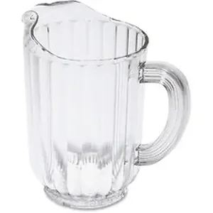 Bouncer Plastic Pitcher is designed for safety and lower replacement costs. Durable polycarbonate plastic resists chipping and breaking. Commercial dishwasher-safe design includes drip-proof spout and self-draining bottom.