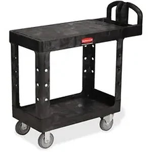 Rubbermaid RCP 450500BK Commercial HD Flat Shelf Utility Cart - 2 Shelf - Push Handle - 500 lb Capacity - 4 Casters - 5