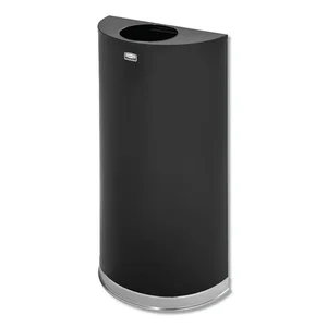 Steel receptacle features an open-top, half-round design. Ideal for areas where space is limited. Indoor, wall-hugging design offers fire-safe steel construction and 7" diameter, vinyl-trimmed disposal opening. Liftoff body facilitates emptying of leakproof rigid plastic liner. Waste receptacle is made with a high percentage of recycled material and is 100 percent recyclable.