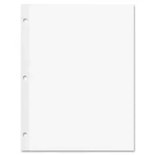 Heavyweight filler paper features a clear Rip-Proof film strip along the binding edge to prevent sheets from pulling through at ring binder holes. Ideal for price lists, parts lists, instruction manuals and other sheets that receive heavy usage. Though Rip-Proof film is remarkably strong, it has only 60 percent of the bulk of other reinforcing to allow more pages in ring binders. Each page of white bond paper has three 9/32" round holes already punched to save time while filing and organizing.