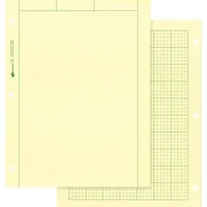 Computation/engineering pad is precision-lined to make diagramming easy. Three-hole punched sheets are printed 5 squares per inch on one side, plain on the other with frame border. Sub 16 Eye-Ease paper is lithographed with green ink. Only frame border will print when copied.