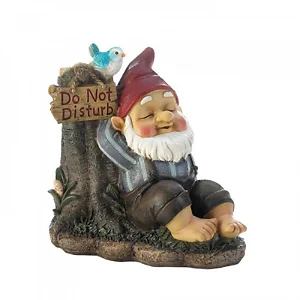 Bring a touch of whimsy to your garden with our Resting Gnome Garden Decor. This charming gnome is depicted napping peacefully against a tree trunk, complete with a playful 'Do Not Disturb' sign and a cheerful bluebird companion. Perfect for adding character to your outdoor space.