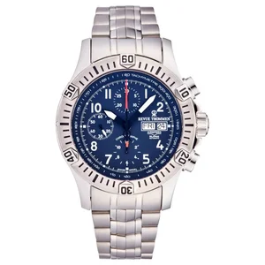 Revue Thommen 16071.6125 Men's 'Airspeed' Blue Dial Day-Date Chronograph Automatic Watch Revue Thommen 16071.6125 Men's 'Airspeed' Blue Dial Day-Date Chronograph Automatic Watch features a stainless steel 45mm case, a blue dial, and a sapphire crystal. The 26mm stainless steel band is fitted with a fold over with safety release clasp. This wrist watch is powered by ETA-Valjoux Caliber 7750 automatic movement. This watch has a water resistance of up to 330 feet/100 meters, suitable for short periods of recreational swimming. Features: Brand: Revue Thommen Model number: 16071.6125 Case Shape: Round Dial window material type: Sapphire Display Type: Analog Clasp: Fold Over with Safety Release Case Material: Stainless Steel Case diameter: 45 millimeters Case Thickness: 16 millimeters Band Material: Stainless Steel Band length: 8 inches Band width: 26 millimeters Band Color: Silver-tone Dial Color: Blue Bezel Material: Stainless Steel Bezel Function: Uni-Directional Movement: Automatic Special Features: Chronograph Water-resistant depth: 100 meters UPC: Revue Thommen 16071.6125 MSRP: $ 3,700