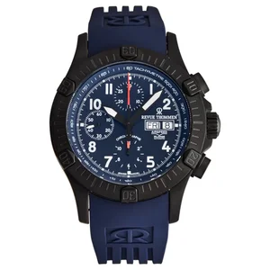 Revue Thommen 16071.6875 Men's 'Airspeed' Blue Dial Day-Date Chronograph Automatic Watch Revue Thommen 16071.6875 Men's 'Airspeed' Blue Dial Day-Date Chronograph Automatic Watch features a stainless steel 43.5mm case, with a uni-directional rotating bezel, a blue dial and a scratch resistant sapphire crystal. The 22mm rubber band is fitted with a deployment clasp. This beautiful wristwatch, powered by Swiss Automatic movement. This watch has a water resistance of up to 330 feet/100 meters, suitable for short periods of recreational swimming, but not diving or snorkeling. Features: Brand: Revue Thommen Model Number: 16071.6875 Case Shape: Round Dial window material type: Sapphire Display Type: Analog Clasp: Deployment Case material: Stainless steel Case diameter: 43.5 millimeters Case Thickness: 15.6 millimeters Band Material: Rubber Band length: 8 inches Band Width: 22 millimeters Band Color: Blue Dial color: Blue Bezel material: Stainless Steel Bezel function: Uni-directional Rotating Movement: Automatic Special Features: Chronograph Water resistant depth: 100 meters UPC: Revue Thommen 16071.6875 MSRP: $ 3,600