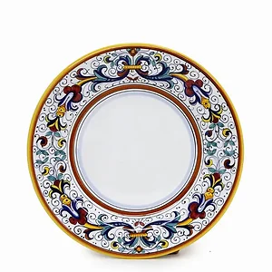 Introducing the RICCO DERUTA Salad Plate, a masterfully hand-painted piece that brings exquisite elegance to your dining experience. This plate showcases the original design from the celebrated Deruta collection, which dates back to the sixteenth century.