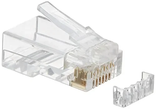 The RJ45 CAT5E Modular Plug is designed for use in networking applications. This connector is compatible with both solid and stranded cables, ensuring versatility in various installations. Each pack contains 50 clear connectors, perfect for bulk projects or repairs. With a reliable round design, these plugs deliver secure connections, making them an essential component for networking setups.