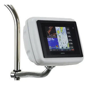 RMX4811 RailMount Pre-Cut for Garmin 8008/8208RailMount NavPods are best used for mounting of an autopilot control, sailing instrument, or small chartplotter onto an existing pedestal guard. Fits onto any 1" or 1.25" diameter tube. A Chromed Stainless Steel arm is used to mount a NavPod. The NavPod can rotate 180 degrees for easy viewing while sitting under the dodger on a rainy day. All wire run from the NavPod, down the center of the stainless steel arm, and into the pedestal guard. This application provides a clean and sturdy installation for electronics, without replacement of the pedestal guard.