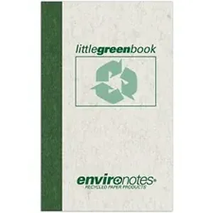 Little Green book memo book is part of the Roaring Spring Environotes collection of recycled products. The cover and back are made with a percentage of recycled material. The cover also features the green recycling emblem with the three chasing arrows. The pocket-size memo book is tapebound to avoid bulky wire and center-sewn along the long side for lasting durability. Inside, the 60 sheets are legal/narrow-ruled.