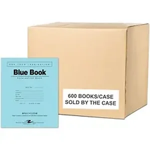 Roaring Spring Recycled Test Blue Exam Book, 1 Case (600 Total), Wide Ruled with Margin, 8.5" x 7" 8 Sheets/16 Pages, Blue Cover