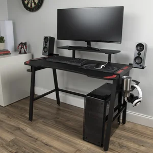 Constructed for durability and stability, the desk features a sturdy frame and a smooth surface, giving you the perfect platform for intense gaming sessions. The built-in cable management system keeps your workspace tidy, while the bold red accents add a touch of personality to your gaming area.