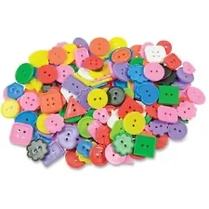 Bright Buttons are a must-have craft supply for all collage or sewing crafts. They come with two holes and four holes. Excellent shapes, such as hearts, flowers and stars, are sized so that children's fingers can easily handle them. They come in a wide variety of cool colors. Use them to make math games to teach counting. Sort, compare and describe them. Glue them to art and construction projects or string for craft activities. They are recommended for children ages 4 and over.
