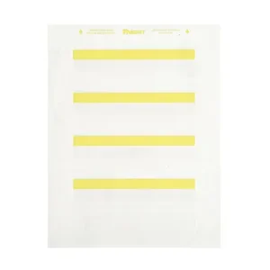 Panduit Optimum polyester labels are designed for durability and efficiency. Each label measures 1.5 inches by 4 inches and comes in a vibrant yellow color, making them perfect for organizing and labeling various items. This product includes 1000 labels across 100 sheets, providing ample supply for extensive labeling tasks.