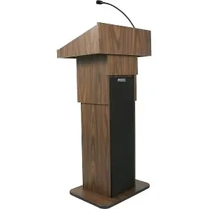 Amplivox S505A-MO Medium Oak Executive Adjustable Column Lectern with Speakers