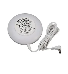 The Sonic Alert Super Shaker is an innovative bed vibrating unit designed to wake even the heaviest sleepers. This powerful device can be conveniently placed under a pillow or between the mattress and box springs. It is specifically made to connect with the Sonic Boom Alarm Clock via its dedicated vibrator outlet.