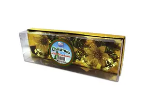 Add a festive touch to your holiday decorations with these stunning gold Christmas bell ornaments. Each ornament showcases two charming bells elegantly bundled with lush greenery and a shimmering gold poinsettia bloom. Perfect for hanging on your tree or adorning wreaths, they come complete with a ribbon for easy display. Each ornament measures 2 1/2" x 2 1/2".