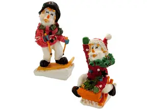 Available in various fun styles, including a cheerful snowman riding a sled and another snowman gracefully skiing, each figurine is crafted from durable resin for long-lasting enjoyment.