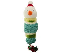 Bring festive cheer to your pup with the Holiday Character Knotted Rope Toy. This fun toy features a soft plush design available in three delightful characters: Santa, a snowman, or a teddy bear, all adorned with a festive Santa hat. The toy includes a plush body made from vibrant patchwork fabric and a sturdy knotted cotton rope for chewing enjoyment. Measuring approximately 18" long and 4.5" wide, it’s perfect for interactive play or solo chewing sessions.