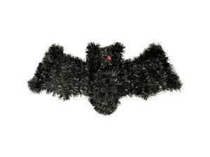 Enhance your Halloween decor with this Glittering Halloween Bat Wall Ornament. Designed to add a spooky yet festive touch to your home, this striking decoration features a shimmering black tinsel-wrapped bat with vibrant red cardstock eyes.