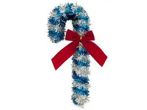Add a cheerful touch to your holiday decor with this stunning Pastel Color Candy Cane Hanging Decoration. Perfect for adorning your Christmas tree, front door, or any part of your home, it features a charming wrapped tinsel candy cane that pairs beautifully with a velvety red ribbon accent.