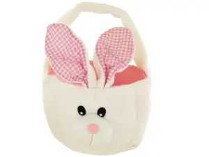 Get ready for Easter with our adorable Pink Bunny Basket, perfect for egg hunts and gifting! This charming basket features a super soft construction and a delightful three-dimensional bunny face on the front, complemented by cute gingham ears and a lovely pink lining.