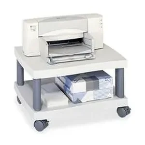 Underdesk Printer Stand easily slides under most desks or worksurfaces and offers an extra storage shelf. Contemporary wave design is used to give the shelves an extra touch of style while the whole piece is accented by charcoal columns. Supply shelves provide storage for paper, ink cartridges, envelopes or labels. Printer assembles with easy snap-together assembly and rolls easily on four dual-wheel casters (two locking). 9 lb. printer stand is made from heavy-duty plastic.
