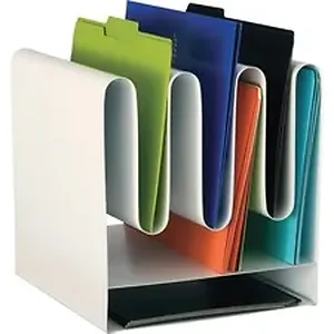 Part of the Safco's Wave Desk Accessory collection, this desktop file organizer offers a versatile, contemporary design that allows varied storage. Files can be stored above and below "waves" for a total of seven vertical compartments and up to two horizontal, letter-size paper trays. Waves aid in separating contents for rapid file location. Durable, powder-coat steel is a magnetic surface for mounting notes and reminders.
