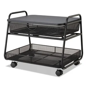 Mobile machine stand slides easily under your desk or worksurface when not in use to save space. It is mobile on four swivel casters (wheels). Two casters lock for reliable stability. Under-desk machine/printer stand includes a steel mesh basket, pullout drawer for storage and a wood laminate top with a natural finish to hold printers, fax machines, letter/legal-size files or other supplies. Overall capacity is 100 lb. Powder-coated steel offers chip-resistance and long-lasting durability. Machine stand complements the entire Onyx line of products for a cohesive, professional work environment. It is great for use in small offices, home offices, reception desks, classrooms or other personal work spaces.