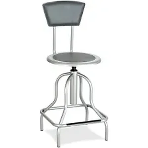 Industrial stool is ideally suited for workbench and work table use in the industrial, institutional and educational industries. Nylon-coated screw lift manually adjusts height. Weight capacity is 250 lb. Leather padded steel seat has a 14" diameter. Leather padded back measures 12" wide x 7" high. Seat-to-floor measurement is 22" to 27". Functions include manual seat-height adjustment and 360-degree swivel. Stool is made with a rugged steel frame and clear-coat finish. 16" diameter base has durable, nonmarring rubber feet to protect floors.