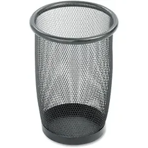Round mesh wastebasket features a sturdy steel rim and welded construction. Mesh design allows for airflow, hindering the growth of mold and odor. Wastebasket is 100 percent recyclable.