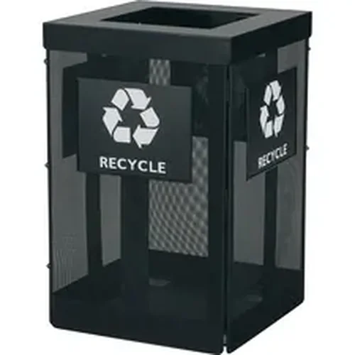 This Onyx Waste Receptacle is made of durable steel mesh with a powder-coat finish to create a long-lasting receptacle solution indoors or outdoors. It also includes reversible signage ("Trash" on one side and "Recycle" on the other) to provide a dual-use receptacle option that suits a variety of needs. Telescoping lid conveniently hides the trash bag inside to create a more aesthetically pleasing look that helps any space remain professional and clean. Durable design allows use indoors or outdoors for a versatile receptacle option. It can be used with or without a rigid plastic liner (model 9669, sold separately) that provides easier cleanup and waste disposal or a retainer ring that holds plastic trash bags in place for convenience. The 36-gallon capacity is great for use in high-traffic areas such as breakrooms, cafeterias, outdoor rest areas, gymnasiums, classrooms, hallways and more.