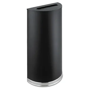 Half-round can gives you a full leg up on your recycling needs whether it's the Slot, Round or Half Circle. The receptacle includes all three different lids with a rubber lining around the opening so you can collect paper, bottles, cans and more. Configure two cans together or place them against the wall for high-traffic areas. 12.5 gallon receptacle includes a rigid plastic liner and is made of steel with a black powder-coat finish for durability.