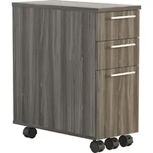 Freestanding Skinny Pedestal is part of the Safco Medina Collection that captures the spirit of Italian design, filling any space with style and height-adjustable capabilities to ensure maximum work-space customization. Pedestal fits easily under Medina height-adjustable desks and returns for easily accessible storage. File drawer holds letter-size or legal-size side-to-side filing. Two box drawers offer a convenient depth for keeping supplies handy. Pedestal rolls easily five casters with three locking casters to keep it in place. Capacity is 20 lb.