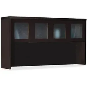 Hutch with glass doors is part of the Mayline Aberdeen collection that balances the look of wood with the performance and affordability of laminate. Aberdeen is elegant enough for the executive suite and flexible enough for team environments. Use hutch with similarly sized Aberdeen desks and credenzas. Four cabinet-styled doors feature self-closing hinges and textured glass to highlight cabinet contents and still provide privacy. The 21-1/2" clearance between worksurface and the bottom of the shelf offers another storage or work area. Back panel features two cable grommets. Hutch accepts a fabric tack panel and task light (both sold separately).