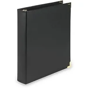 Elegant binder combines traditional styling with high-quality materials and workmanship to assure the finest professional appearance. Flexible, leatherlike covers with sewn edges offer increased durability. The curved spine conceals the rivet construction for a sophisticated look that's perfect for school or office use. Brass-plated metal rings and corners look stylish while securely holding your documents. Two inside pockets provide additional storage options. Round-ring vinyl binder holds letter-size documents, sheet protectors and indexes (sold separately).
