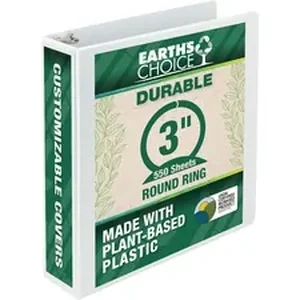 Biobased, three-ring, view binder features a durable, well-constructed design with both biobased and recycled properties to make it a great sustainability solution for the environment. It is made with at least 59 percent biobased material and a cover made of 25 percent plant-based, renewable plastic. Biobased content is carefully tested using ASTM D-6866 standards. USDA certified binder also features a durable chipboard made from a high percentage of post-consumer material. The 3" capacity can comfortably hold up to 550 sheets of three-hole punched, letter-size paper. Binder includes two clear inside pockets on the front and back covers for additional storage and organization of loose documents and unpunched papers. A clear overlay on the front, back and spine of the binder gives full control and flexibility over customization of presentations, organizational projects, office reports, class projects and more.