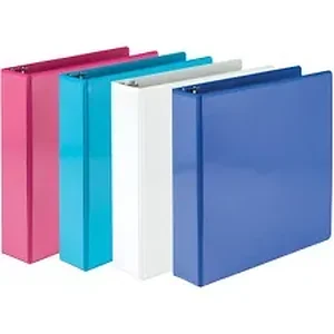 Economy View Binders in fashion colors feature a clear overlay on the front, back and spine, giving full control and flexibility over customization. Plastic is tightly sealed over rigid chipboard made from post-consumer content. Spine-mounted, 2" round rings with double boosters can hold up to 425 sheets (8-1/2" x 11" size) with ease. Three-ring binder also includes two clear, inside horizontal pockets for additional storage and organization of loose documents.