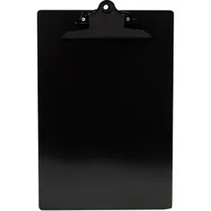 Clipboard features a heavy-duty, aluminum construction that's strong and durable for long-lasting use in nearly any environment. High-profile clip with a built-in hanging hole keeps up to a 1" thick stack of papers tightly secured. Smooth base serves as a sturdy writing surface to help keep your writing neat and legible wherever your work takes you. Clipboard is perfect for warehouse workers, students, teachers, delivery drivers, contractors, trade professionals and more.