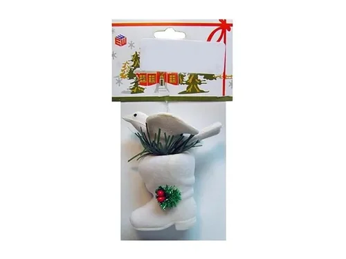 This charming white felt Christmas stocking features a beautifully crafted dove perched atop. Perfect for adding a festive touch to your holiday decor, this stocking is ideal for hanging on the tree or as a part of your seasonal decorations.