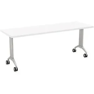 Specialt SCT LINK2472MSWH Special-T Link Flip & Nest Table - White Rectangle Top - Metallic Silver T-shaped Base - 72 Ta