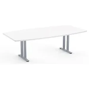 Conference table features a contemporary metal base that provides excellent support and stability. 2" diameter, dual column provides excellent stability and long-lasting use. Plastic levelers allow the table to sit flat on uneven surfaces to prevent wobbling. Table is perfect for conference rooms, meeting areas and more.