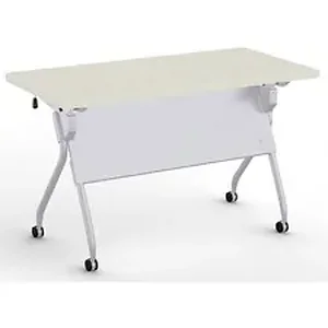 Stylish, lightweight and easy to use, the Transform-2 Flip and Nest Table provides a versatile solution to any training room and classroom environment. Contemporary base offers straight-on nesting in flip-top application that saves room in tight spaces. Each additional table takes up to 7-1/2" in the flipped position. Its lightweight material, casters and one-handed activation allow anyone to flip and move tables with ease. Flip latch allows one-handed activation on both sides. Perforated steel, modesty panel extends 14" below the tabletop and is an integral part of the base, providing privacy and an elegant look at the same time. Continuous, heavy-duty beam prevents top from sagging. Stretcher bar spans between the legs and provides additional stability. Tabletop features high-pressure, patterned laminate in Crisp Linen. Cord management is easy with the J-shape wire manager and table-leg wire channel. Locking, 2-1/4" dual-wheel black casters on the silver base hold up to 112 lb.