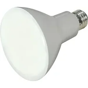 LED BR30 bulb with a frosted finish features an energy-efficient design that uses nearly 80 percent less electricity than an incandescent bulb to minimize your operating costs. LED bulb offers a 105-degree beam spread to illuminate your space with a soft white light. Dimmable bulb with 650 lumens provides up to 25,000 hours of light. 120-volt, 9.5-watt bulb also features a 3,000 Kelvin temperature, 90 CRI and medium base.