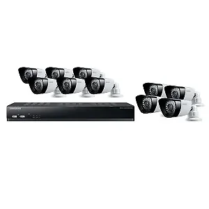 Enhance your home security with the Samsung 16-Channel DVR System. This comprehensive surveillance solution includes 10 high-definition night-vision cameras that are weatherproof, allowing for reliable monitoring both indoors and outdoors.