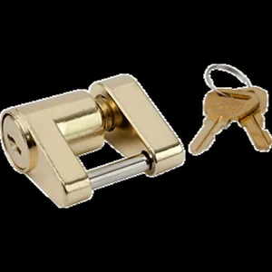 Designed for theft deterrence, coupler locks also provide an additional level of security to prevent accidental uncoupling while in transit to better protect your trailer. Corrosion resistant brass plated zinc construction. Two-piece design for better access in hard to reach places. Fits most coupler sizes. Includes two keys.