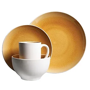 The Serenity Amber 16-piece Dinnerware Set by Gibson will create a peaceful atmosphere at your table. The colors will spawn a serene and soothing feeling , while the crackled design creates visual interest. You will enjoy the versatility of this set as it is ideal for hosting guests or having family meals. <br><br>This set is made from stoneware<br>Four Dinner Plates 10.5 x 10.5 x 1 - 1.10lbs <br>Four Salad Plates 8.25 x 8.25 x 1 -0.50lbs <br>Four Bowls 5.75 x 5.75 x 3 - 0.80lbs<br>Four Mugs 14 oz. <br>Microwave safe for easy heating<br>Dishwasher safe for easy cleaning