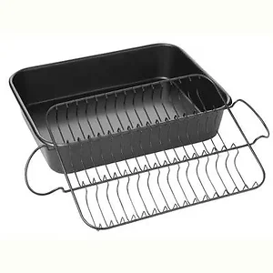 Enjoy healthier and delicious meatballs every spaghetti night with the Chicago Metallic Meatball Baker. This innovative pan is designed with a customized rack that holds meatballs in place while baking, eliminating the mess of frying. The non-stick coating ensures easy clean-up, and all excess fats drain away for a healthier meal. It's not just for meatballs; this versatile tool can also be used for kabobs and stuffed mushrooms. The roaster can be used independently without the rack for even more culinary options!