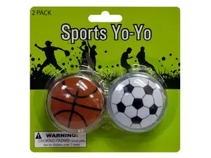 The yo-yo is a classic toy that never goes out of style! Great for fun, practicing hand/eye coordination or for stress relief. Each pack comes with 2 yo-yos in a basketball and soccer ball design. Each yo-yo measures approximately 2" in diameter. For ages 3 and up. Comes packaged in a blister pack.