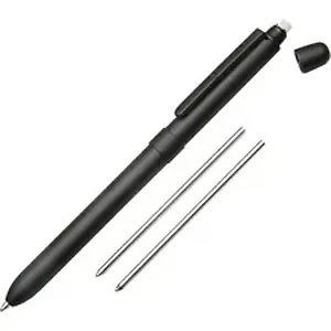 Multifunction pen offers a choice of writing instruments in a single barrel and is specifically made for small pockets on military uniforms. Design includes black and red medium ballpoint ink and a 0.5mm pencil. The screw-top eraser fits tightly on the pencil top. All-metal construction provides added durability. B3 Aviator Pen includes a special finish that won't reflect light.