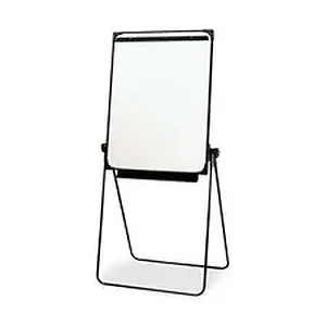Lightweight, portable easel is easy to set up and adjusts from 41" to 68" for both tabletop and floor use. Adjust the dry-erase board angle for vertical use or horizontal use. Board also can be slanted at an angle. Compact, lightweight board measures 29" x 38" and has a melamine surface, rounded corners and a convenient front-mounted tray. Easel also features sturdy metal legs and a retainer bar for flip-chart pads.